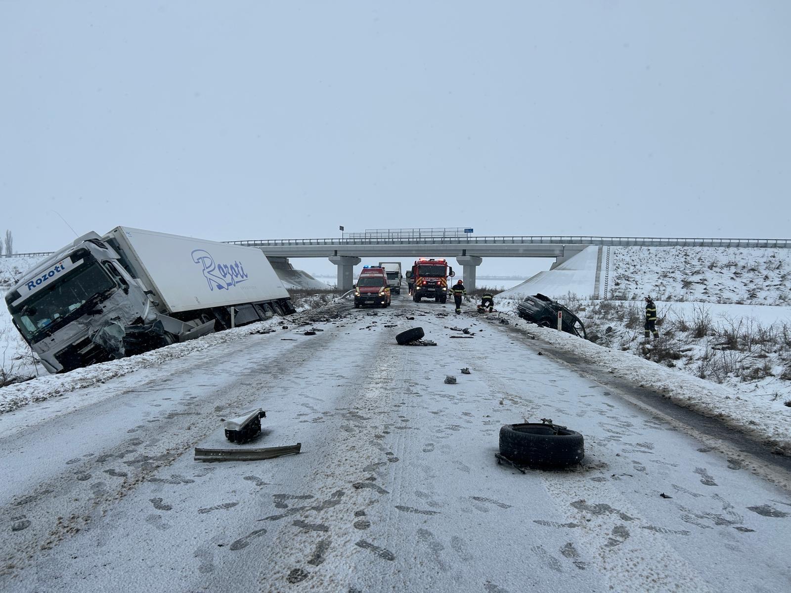 În accident au fost implicate un autotren și un autoturism. În cele două autovehicule se aflau doar conducătorii auto.