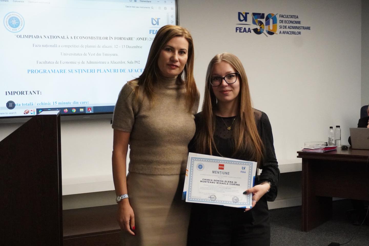 Mențiune – Chirca Denisa Elena; Munteanu Mihaela Corina (Universitatea din Craiova, Facultatea de Economie și de Administrare a Afacerilor)