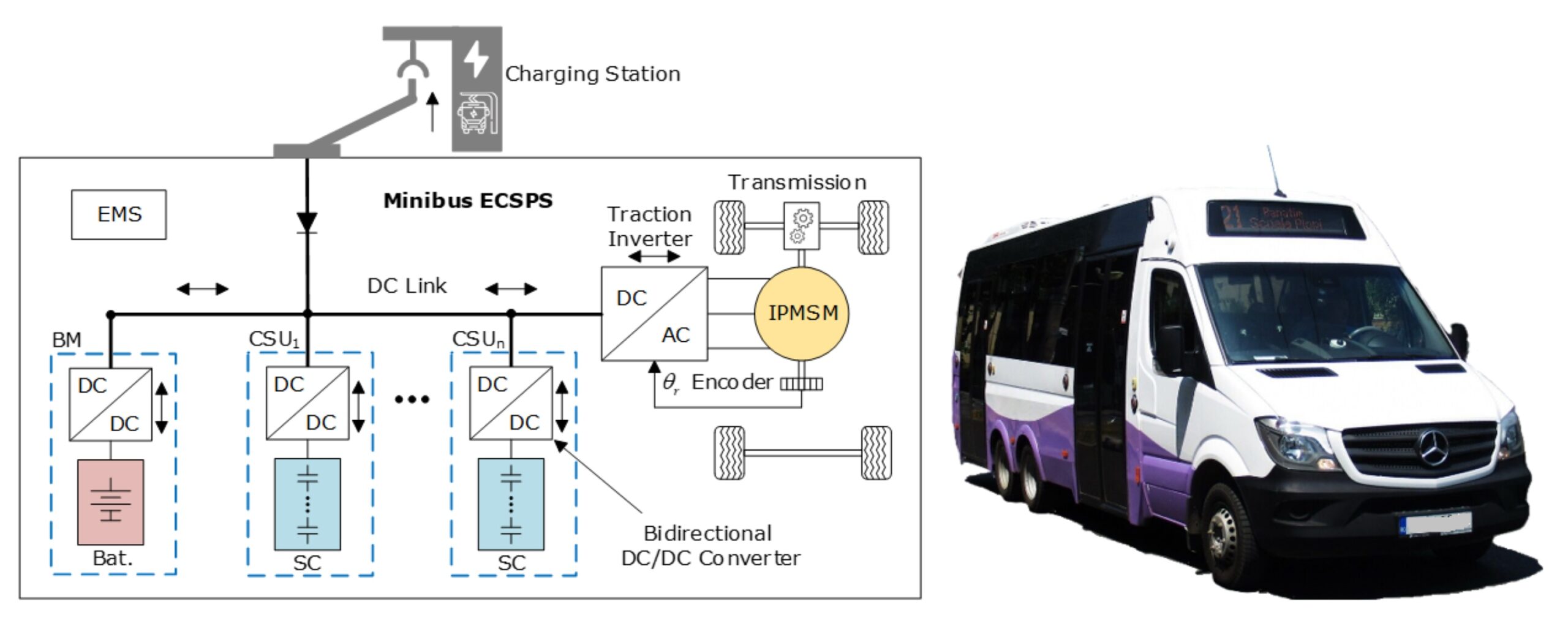 Ideea centrală a cercetării este propunerea unei noi configurații de propulsie electrică pentru un microbuz destinat transportului public urban, în care energia electrică nu este stocată în baterii litiu-ion, ci în supercondensatoare. Acestea au avantajul unei densități de putere foarte mari, ceea ce permite încărcări extrem de rapide – sub un minut –, exact în intervalul de staționare în stații.