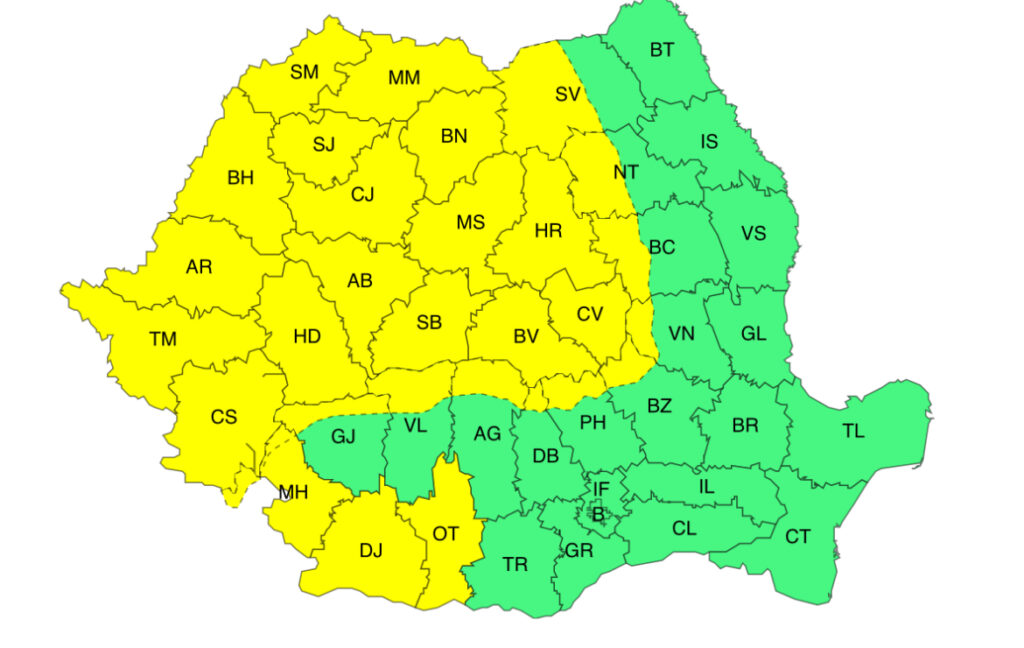 Apoi, din 24 octombrie, de la ora 10:00, și până în 25 octombrie, la ora 21:00, intră în vigoare un alt cod galben de vânt care vizează zonele: Banat, Crișana, Maramureș, Transilvania, vestul și sudul Olteniei și în zona de munte.
