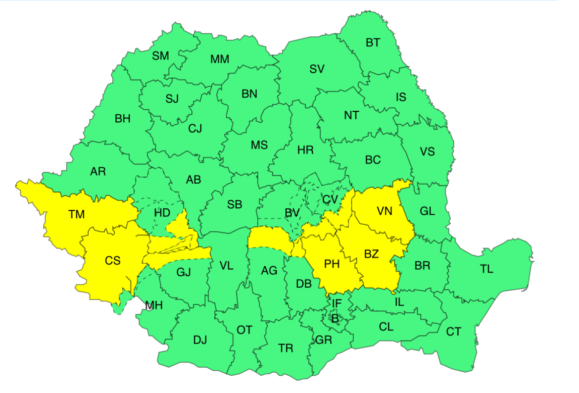Ultima atenționare meteorologică de cod galben este valabilă în intervalul 05 februarie, ora 10:00 – 05 februarie, ora 20:00. În județul Caraș-Severin și local în județul Timiș, vântul va avea intensificări cu viteze de 50…70 km/h, iar în Munții Banatului și în zona înaltă din vestul Carpaților Meridionali, rafalele vor atinge 90…100 km/h, viscolind zăpada depusă.