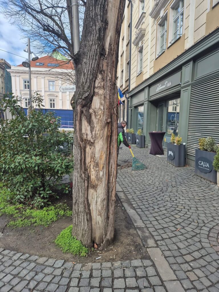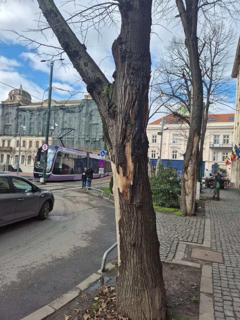 “Prevenim azi, ca să evităm accidente mâine. Sâmbătă, 28 februarie 2026, intervenim prin colegii de la Horticultura pe strada Proclamația de la Timișoara, lângă Piața Sf. Gheorghe, în fața Hotelului Atlas, unde vom defrișa doi tei puternic degradați.