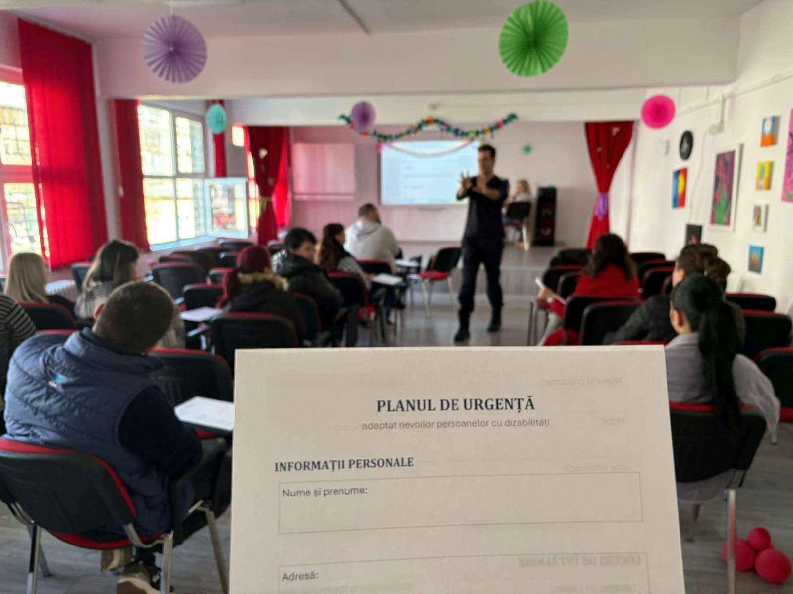De această dată, peste 𝟏𝟎𝟎 𝐝𝐞 𝐩𝐞𝐫𝐬𝐨𝐚𝐧𝐞 – dintre care 61 de persoane cu dizabilități și 40 de aparținători și membri ai personalului de suport – din cadrul 𝐂𝐞𝐧𝐭𝐫𝐮𝐥𝐮𝐢 𝐒̦𝐜𝐨𝐥𝐚𝐫 𝐩𝐞𝐧𝐭𝐫𝐮 𝐄𝐝𝐮𝐜𝐚𝐭̦𝐢𝐞 𝐈𝐧𝐜𝐥𝐮𝐳𝐢𝐯𝐚̆ „𝐂𝐨𝐧𝐬𝐭𝐚𝐧𝐭𝐢𝐧 𝐏𝐮𝐟𝐚𝐧” 𝐝𝐢𝐧 𝐓𝐢𝐦𝐢𝐬̦𝐨𝐚𝐫𝐚, au beneficiat de sesiuni de pregătire pentru răspuns în situații de urgență, adaptate nivelului de înțelegere și tipului de dizabilitate.