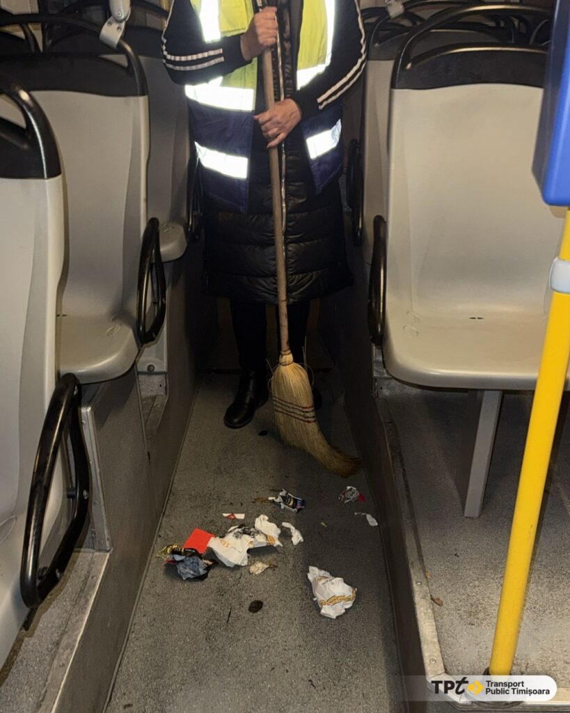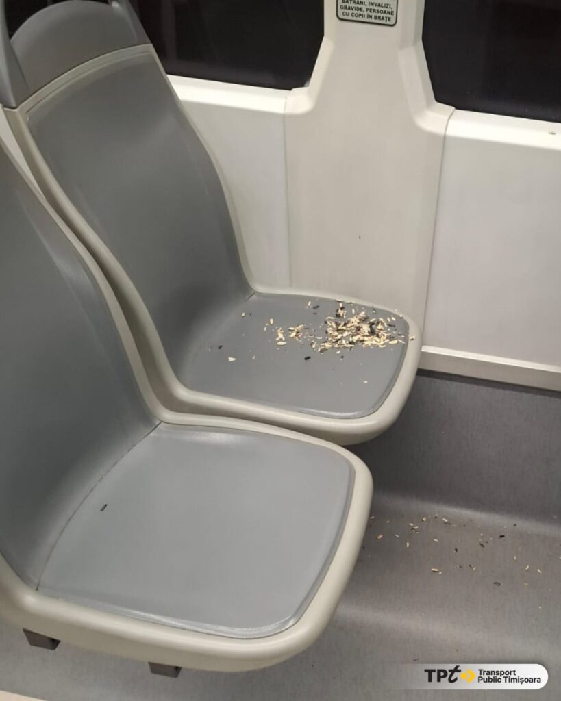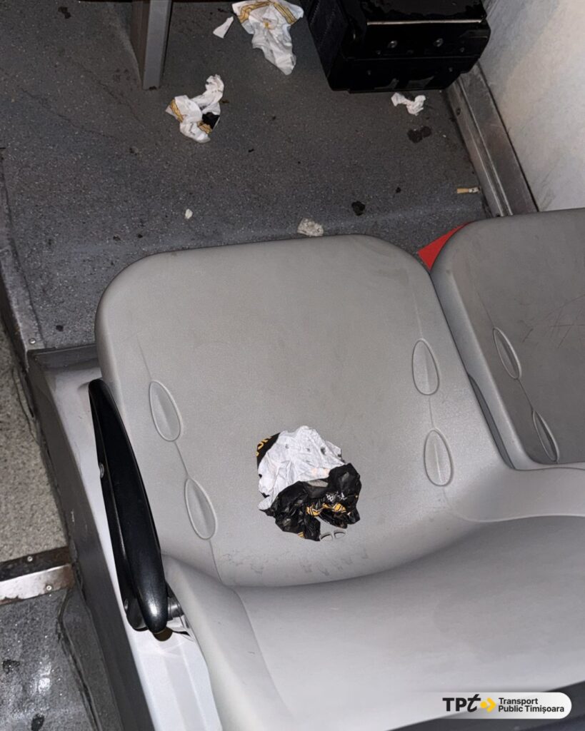 Societatea de Transport Public Timișoara (STPT) anunță că echipele de salubrizare intervin constant, inclusiv dimineața devreme, seara târziu și chiar noaptea, pentru a menține curate mijloacele de transport în comun. Reprezentanții societății spun că se confruntă frecvent cu situații neplăcute: coji de semințe aruncate pe scaune, resturi de mâncare, șervețele folosite, gume lipite, dar și scaune tăiate sau zgâriate.