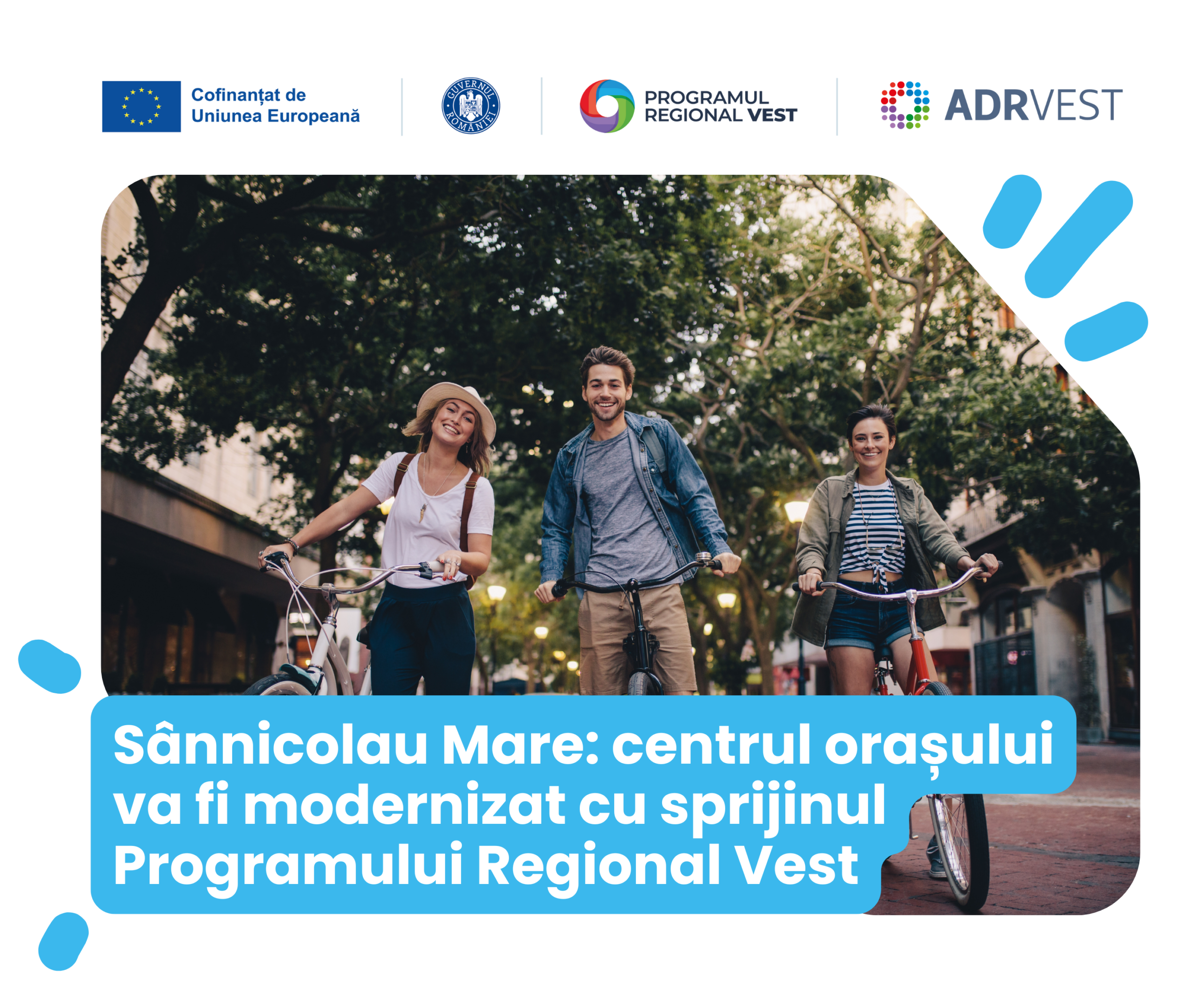 Prin această investiție finanțată prin Programul Regional Vest, centrul orașului Sânnicolau Mare va deveni un spațiu mai verde, mai sigur și mai accesibil.
