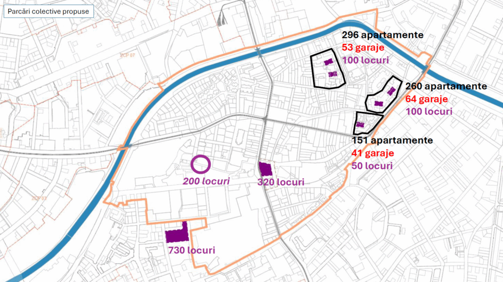 Planul Urbanistic propune deschiderea malului stâng al canalului Bega, între Podul Dacilor și Podul Andrei Șaguna, pentru continuarea promenadei și a pistei de biciclete. De asemenea, documentul identifică două amplasamente pentru parcări multinivel și zone dedicate transformării vechilor garaje în parcări moderne. Totodată, sunt prevăzute noi conexiuni între străzile existente, precum și culoare eco-peisagere pe traseele fostelor brațe naturale ale Begăi care traversau odinioară cartierul.
