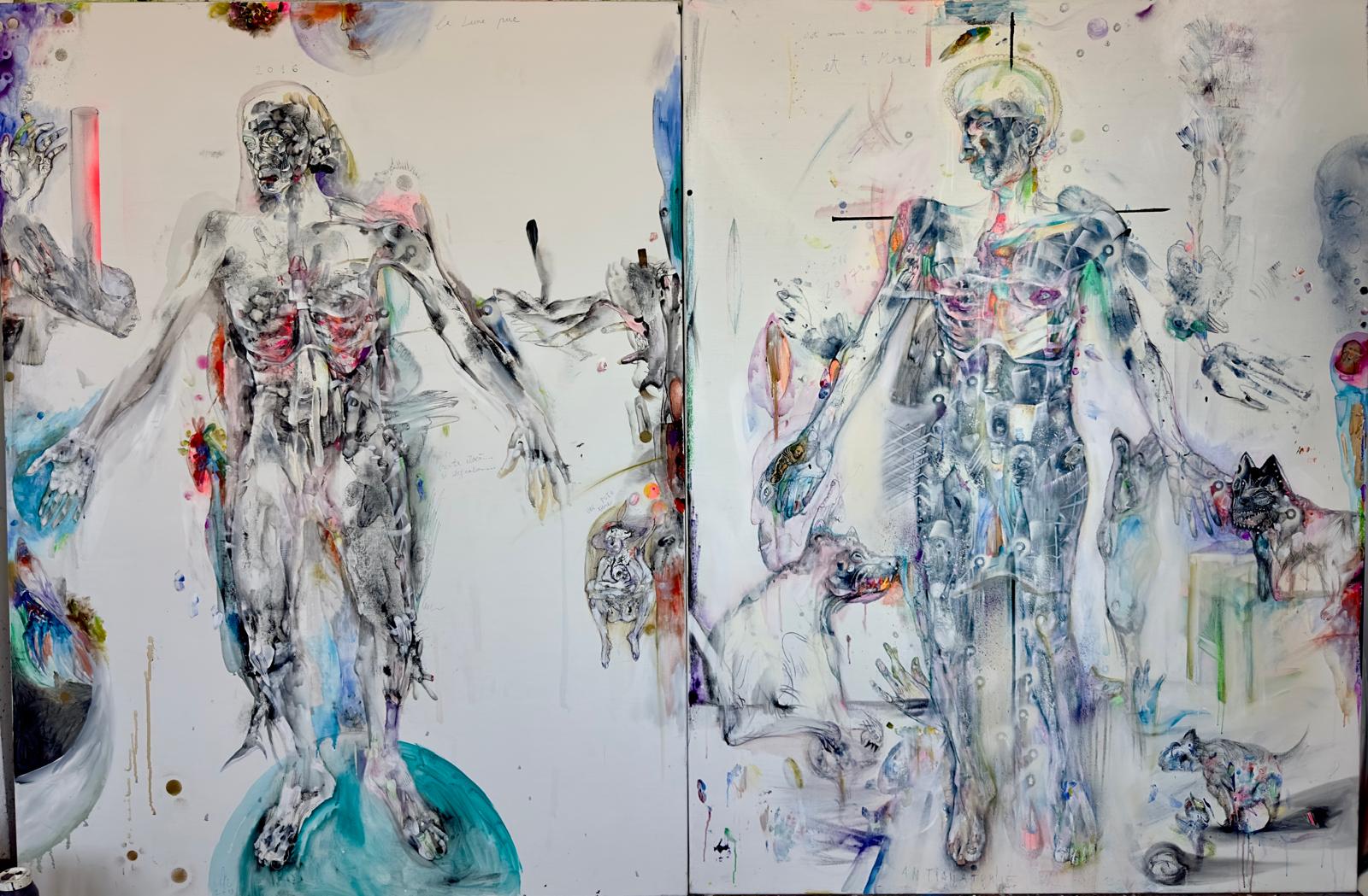 Textele care însoțesc lucrările mele s-au născut inițial dintr-o selecție instinctivă – versuri întâmplătoare din melodiile pe care le ascultam în timp ce pictam. Pentru mine, aceste texte nu sunt doar însoțitoare, ci parte din limbajul vizual însuși – extensii ale ideii plastice, componente ale unei recuzite personale, uneori suprarealiste, care oferă noi piste de lectură”, declară artistul.