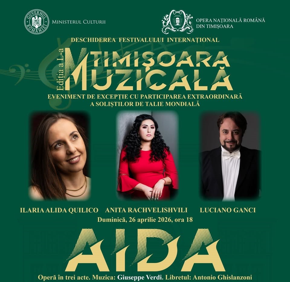 laria Alida Quilico , Anita Rachvelishvili și Luciano Ganci sunt invitați în „Aida” la Opera timișoreană, în cadrul ediției a L-a – „Jubileu” a Festivalului Internațional „Timișoara Muzicală”, ce va avea loc în perioada 26 aprilie – 31 mai.