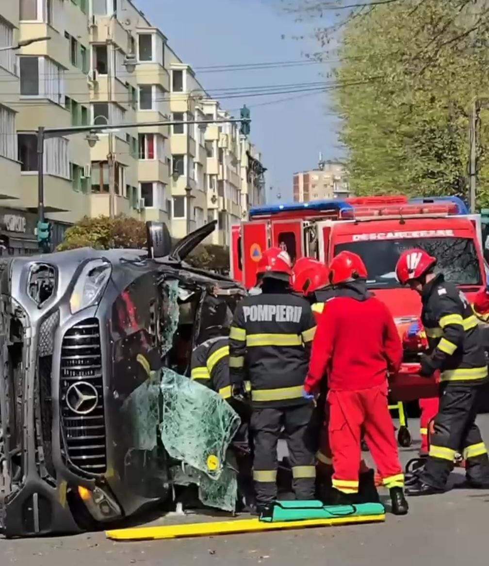 Un accident rutier serios a avut loc, vineri, pe Bulevardul Revoluției din municipiul Arad, în zona Ziridava, unde două autoturisme au fost implicate, dintre care unul s-a răsturnat.