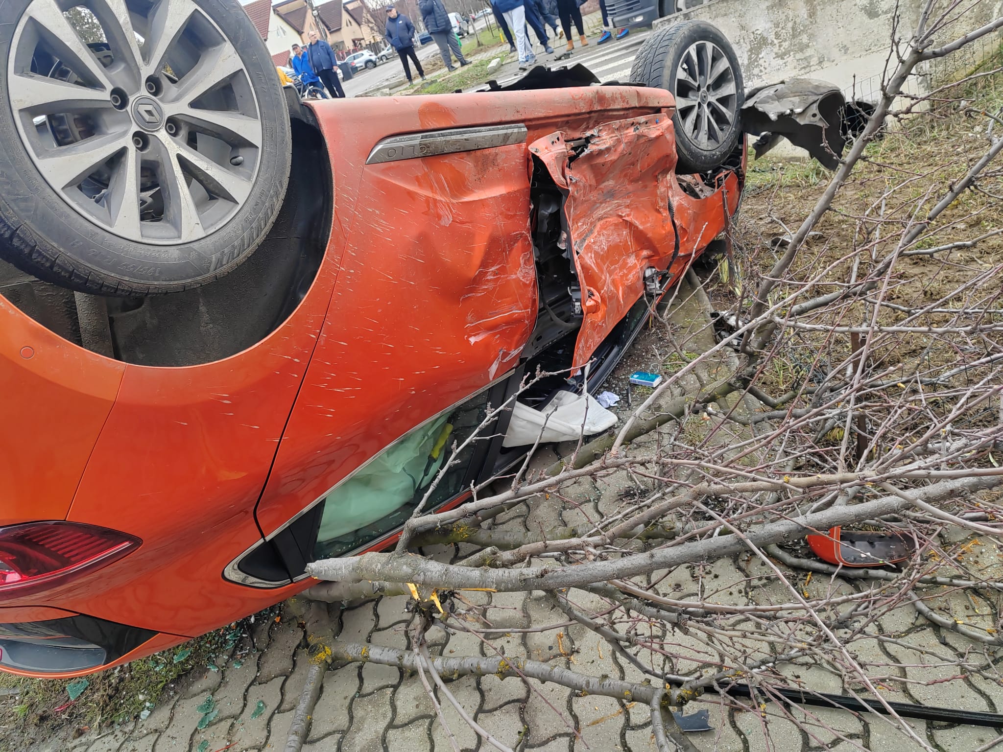 În accident au fost implicate două autoturisme, dintre care unul s-a răsturnat. În vehicule se aflau doi adulți și un minor.