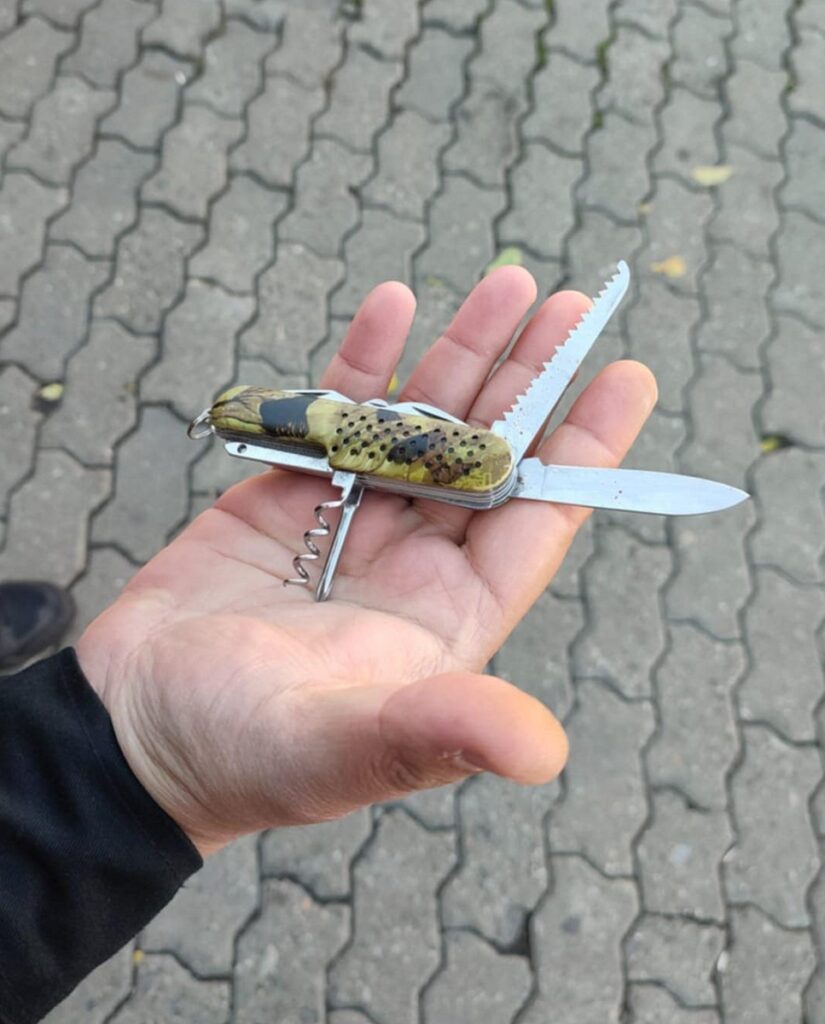 La efectuarea controlului corporal sumar asupra bărbatului de 50 de ani, cu domiciliul în Timișoara, s-a constatat că avea asupra sa un obiect periculos, mai exact un briceag. El a fost preluat imediat de polițiștii locali fiind întocmite documentele pentru predarea lui polițiștilor de la Secția 3, în vederea continuării cercetărilor sub aspectul săvârșirii infracțiunii de portul sau folosirea fără drept de obiecte periculoase. Atât el cât și femeia de 62 de ani, cu domiciliul în Vinga, care îl însoțea au fost și sancționați cu câte 500 lei conform Legii 92/2007 pentru călătorie fără bilet.