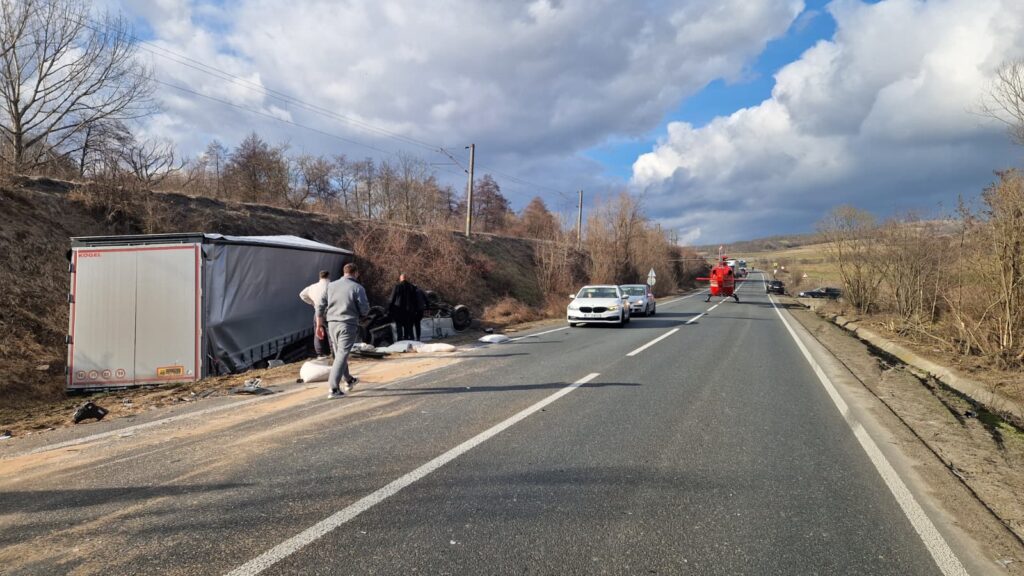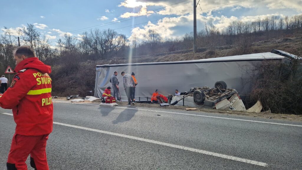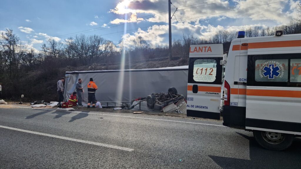 Din primele cercetări efectuate la fața locului reiese că un autocamion ar fi pătruns pe sensul opus de mers, intrând în coliziune frontală cu o autoutilitară care circula regulamentar. Impactul a fost extrem de violent.