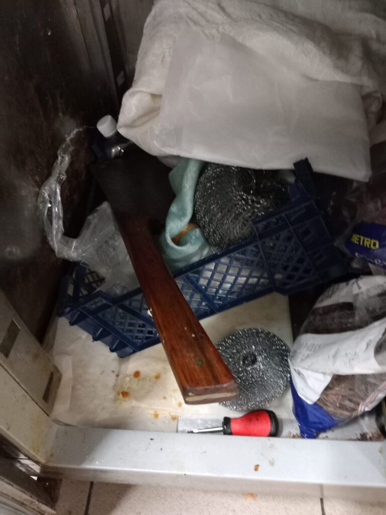 Abateri constatate: practici comerciale incorecte, produse alimentare cu data durabilității minimale depașită, cu modificari organoleptice, produse alimentare lipsite în totalitate de elemente de caracterizare-identificare necesare stabilirii conformității acestora, aragaz, tigăi, oale neigienizate corespunzător, cu depuneri consistente de grăsime arsă, înnegrite, gresie și faianța neigienizate, murdare, vitrine frigorifice și congelatoare neigienizate, cu resturi de alimente și rugina, răcitor pentru băuturi răcoritoare utilizat la depozitarea alimentelor -tocătoare arse, neigienizate, cuțite cu manere de plastic și nituri cu depuneri, ouă cu urme biologice(excremente) atat în zona blocului alimentar cat și la bar nu există coșuri de gunoi acoperite, iar pentru spălarea veselei se utilizeaza detergent pentru vase – pasta pentru uz casnic(nu pt uz comercial)