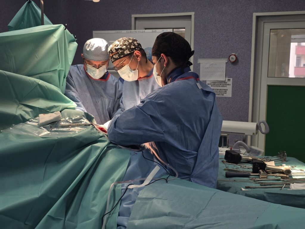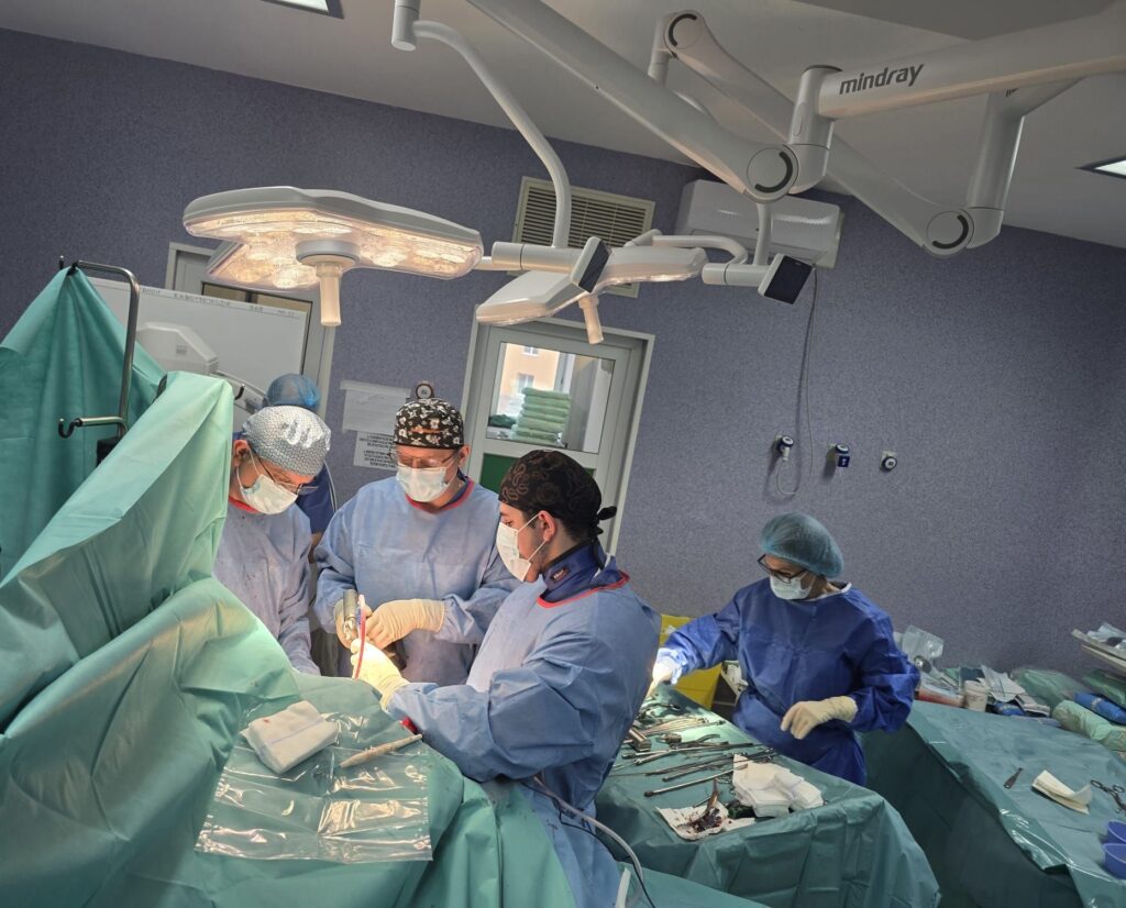Intervenția a fost realizată de o echipă multidisciplinară, coordonată de conf. dr. Cosmin Faur, alături de dr. Dragoș Troțea, medic primar ortopedie-traumatologie, și dr. Zoran Săndici, medic primar ATI, sprijiniți de o echipă extinsă de medici, asistenți medicali și personal auxiliar.