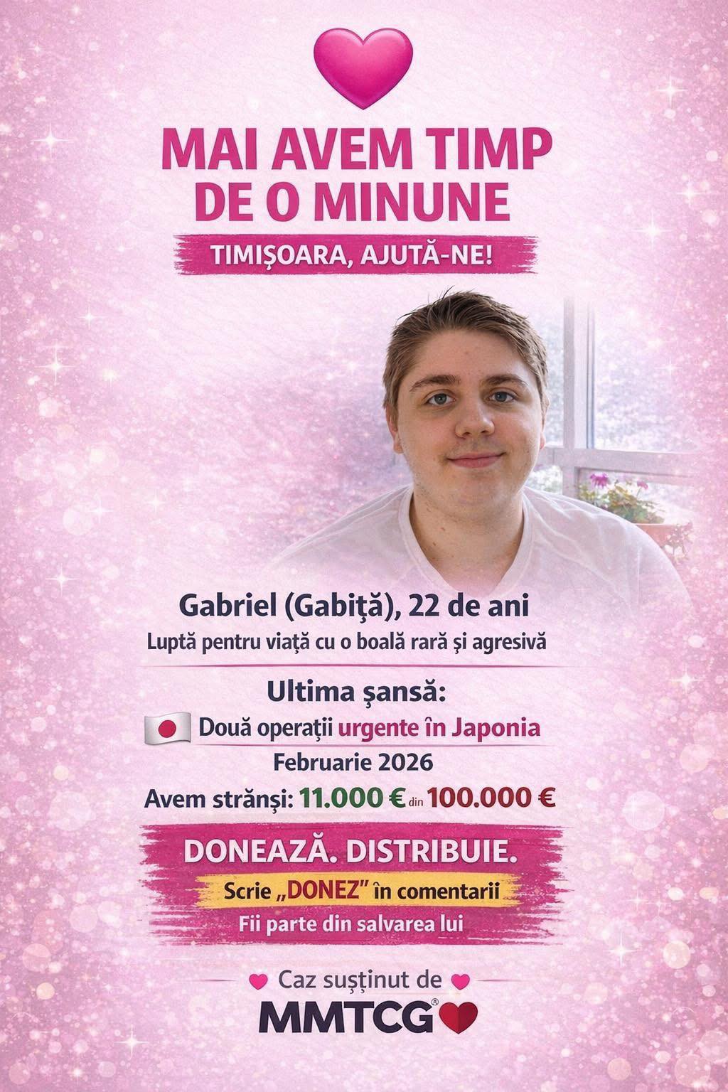 Mama lui, Oana, împreună cu echipa și comunitatea MMTCG, continuă lupta zilnic pentru ca Gabriel să poată zbura spre Japonia. Fiecare donație, fiecare share contează – pentru că acest tânăr nu mai este doar al familiei lui, ci al unei Românii întregi care vrea să îl vadă trăind frumos și fără durere.