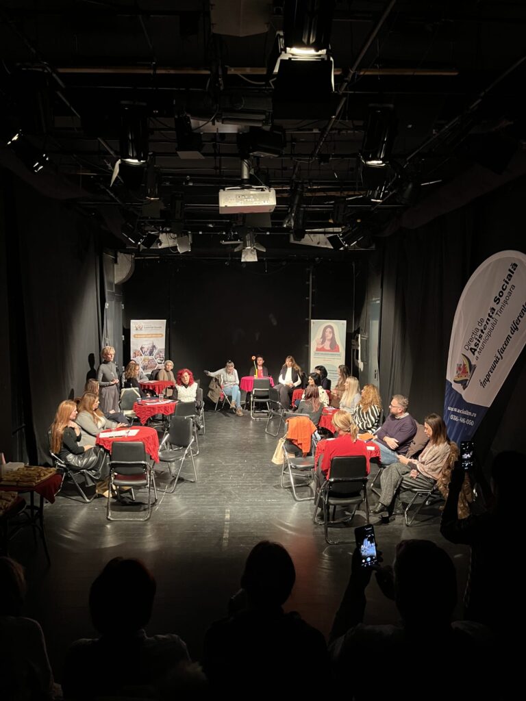 Evenimentul a continuat în Sala Studio a Teatrului Maghiar de Stat „Csiky Gergely” cu o masă rotundă, la care au participat reprezentanți ai instituțiilor și organizațiilor implicate în prevenirea și combaterea violenței domestice. Discuțiile au vizat provocările actuale, bunele practici și consolidarea rețelei locale de colaborare, în sprijinul victimelor.